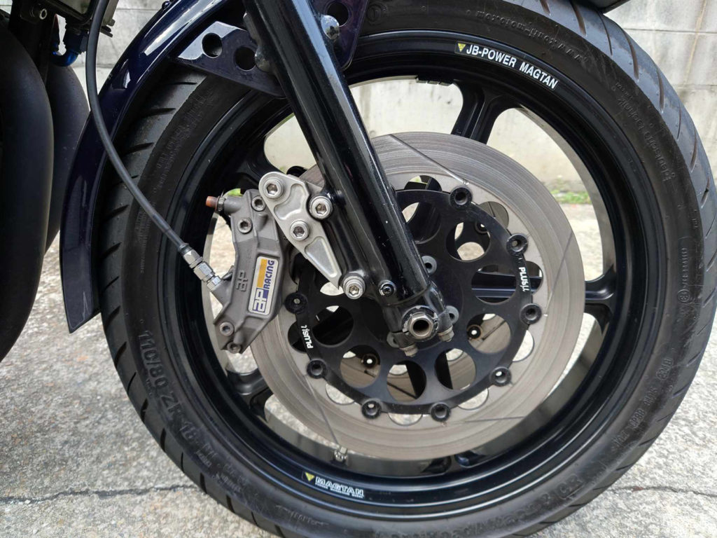 - エンジン:ヨシムラST2カム、インナーシム、SOHC 75mm ピストン (シリンダーはZ1100R用のものを使用)、クランク芯出し、YRPオイルポンプ
